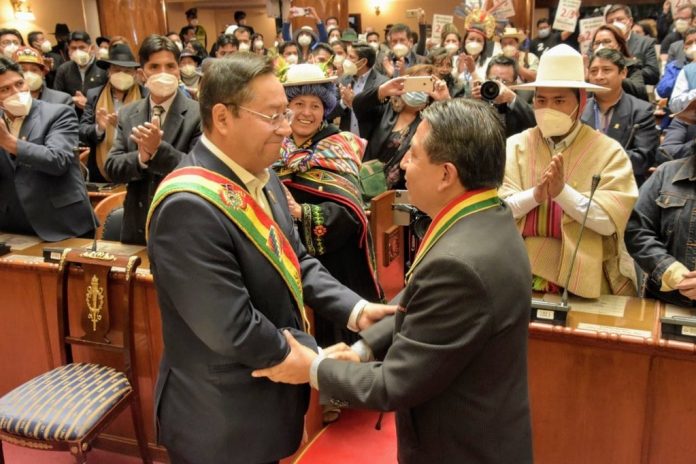 La investidura se realizó en el Congreso bicameral de La Paz, después de haber ganado las elecciones generales el pasado mes en primera vuelta con un contundente 55% de los votos.