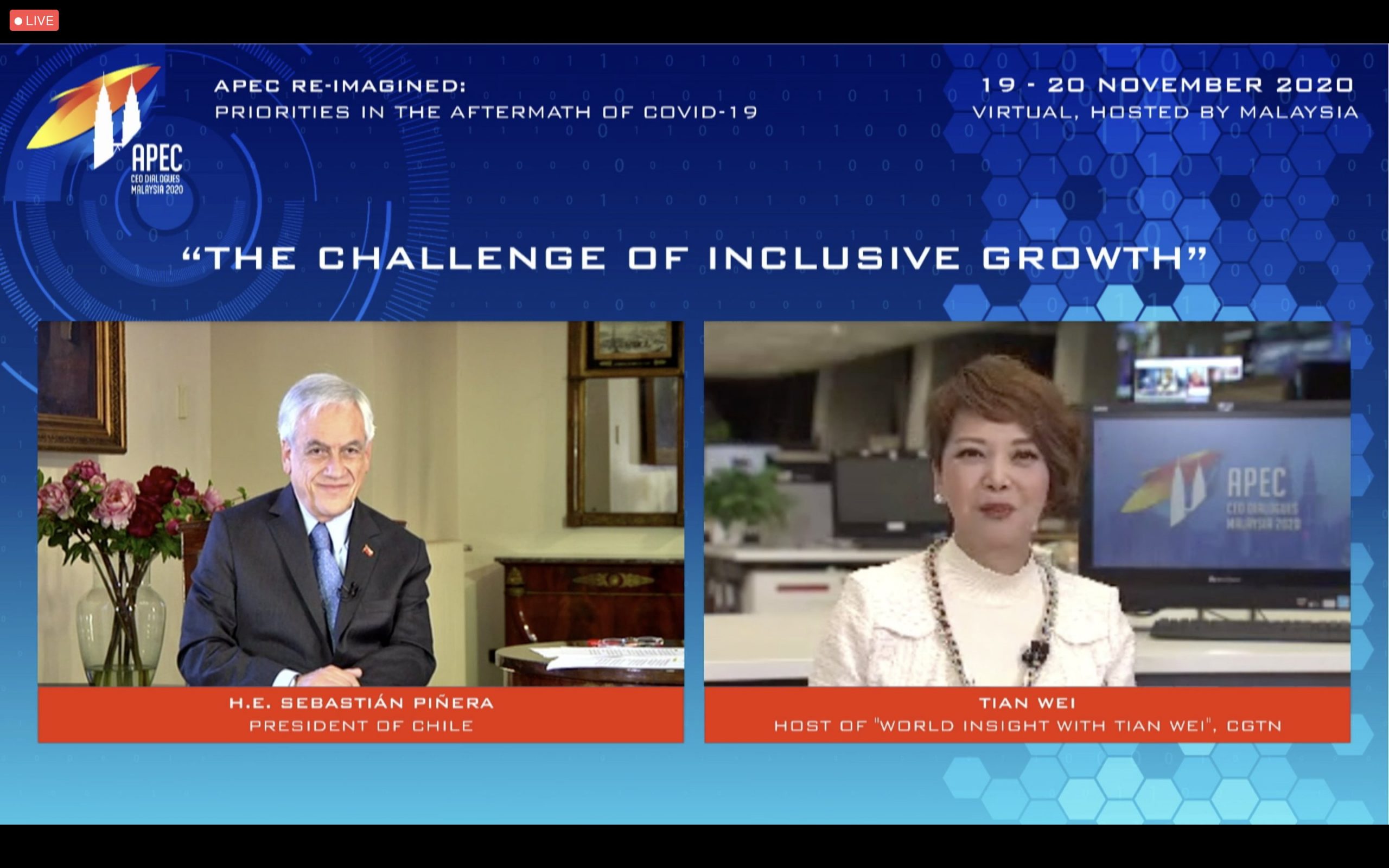 En tanto en la jornada de ayer, el Jefe de Estado nacional tuvo una conversación en directo con la presentadora Tian Wei de la cadena de televisión estatal china CGTN, en el marco del segmento «APEC CEO Dialogues Malaysia 2020«, consistente en entrevistas individuales con cada uno de los diversos líderes de los países miembros de la APEC.