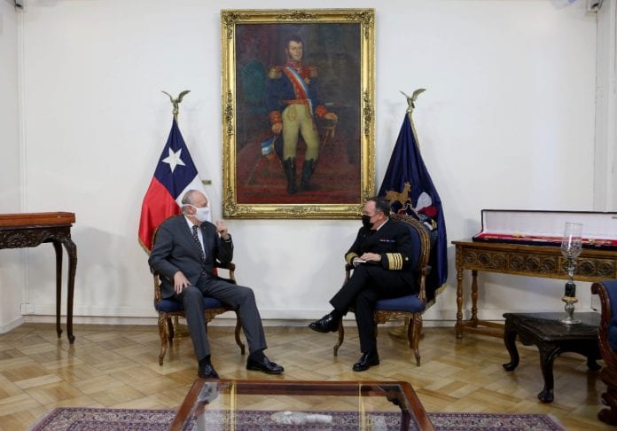 Durante la mañana de este miércoles, los comandantes en Jefe del Ejército, general Ricardo Martínez; la Armada, almirante Julio Leiva; y la Fuerza Aérea, general Artruro Merino, entregaron sus saludos protocolares al nuevo ministro de Defensa Nacional, Baldo Prokurica, quien fue nombrado en el cargo el pasado viernes 18 en reemplazo de Mario Desbordes.