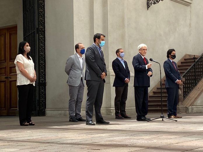En La Moneda, en una rápida puesta de escena y acompañado por los ministros de Interior, Hacienda, Segpres, Segegob y Desarrollo Social, el Mandatario dio a conocer también la promulgación del «Fondo de Emergencia Transitorio COVID-19, un fondo por hasta 12 mil millones de dólares, cuyo objetivo es financiar las medidas necesarias para enfrentar las consecuencias causadas y atender las necesidades generadas por la pandemia del coronavirus», el cual había sido acordado con la oposición en los acuerdos del 14 de junio pasado.