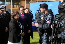 Posteriormente se realizaron las Salvas de Honor al mando saliente y entrante, efectuadas por los cañones de presentación de la Guarnición de Infantes de Marina de Orden y Seguridad, culminando la ceremonia con la entrega del Gallardete de Mando al Contraalmirante Ronald Baash.