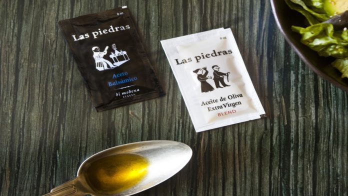 Dado el actual escenario de distanciamiento social producto del Covid-19, Aceite Oliva Las Piedras lanzó al mercado sachets de Aceite de Oliva extra virgen y de Aceto Balsámico en formatos de 8 gramos. Estos productos de uso individual son una excelente solución para los servicios de delivery, restaurantes y cafeterías que podrán seguir entregando aderezos de buena calidad, en formato personal. Se ofrecen en cajas de 400 unidades.