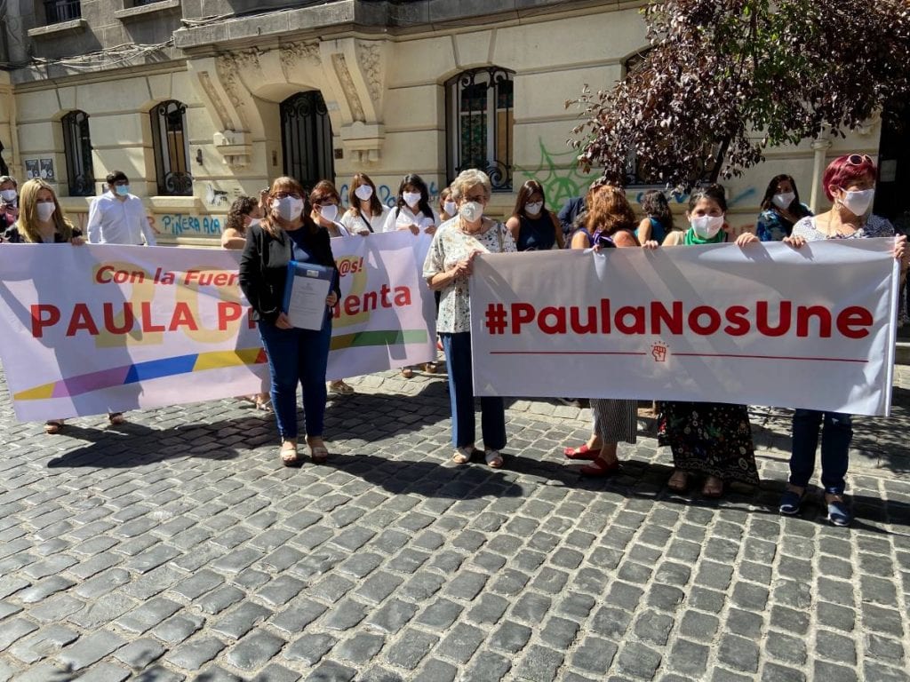 El plazo de inscripción vencía al mediodía, y por ello, pasadas las 11 horas, un grupo de adherentes, principalmente mujeres que adhirieron a la carta “Nunca más sin nosotras” que promovió la candidatura de Narváez al interior del PS, llegó hasta la sede de calle Paris, en el centro de Santiago, para hacer entrega de las firmas requeridas para su inscripción.