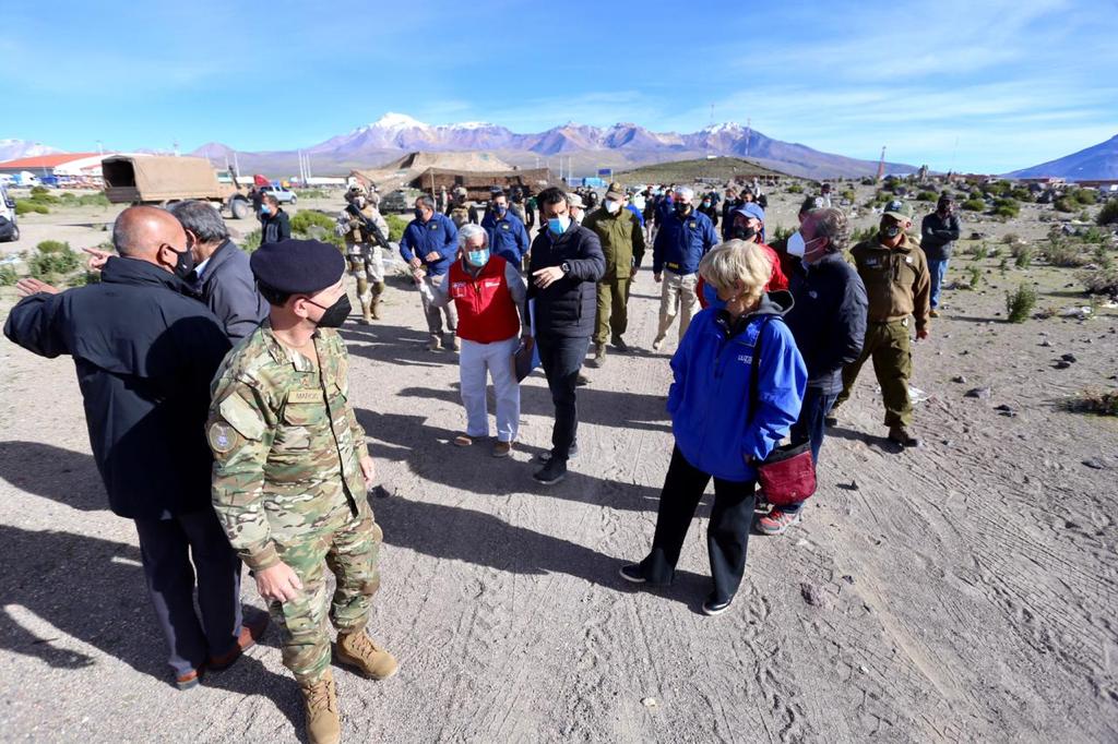 A las 9 de la mañana comenzó la agenda del ministro del Interior, Rodrigo Delgado, acompañado por sus pares de Relaciones Exteriores, Andrés Allamand, y de Defensa, Baldo Prokurica, en la localidad fronteriza de Colchane, en medio de la crisis migratoria desatada en la frontera con Bolivia, con la entrada masiva de inmigrantes ilegales principalmente de origen venezolano.