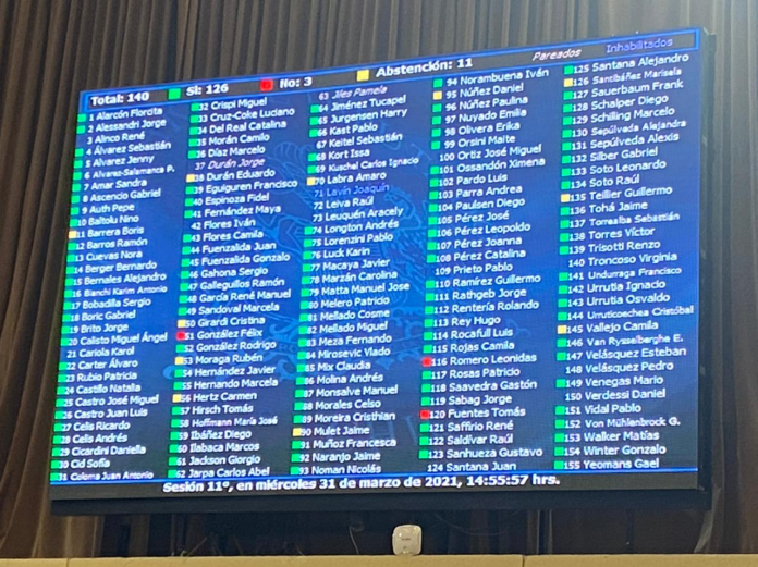 La iniciativa fue aprobada con 126 votos a favor, 11 abstenciones y 3 votos en contra.