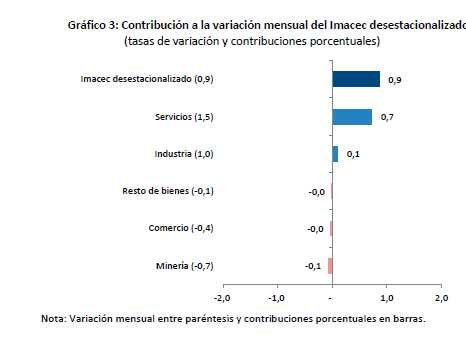 Por su parte, el crecimiento del Imacec desestacionalizado fue impulsado por el desempeño de los servicios
