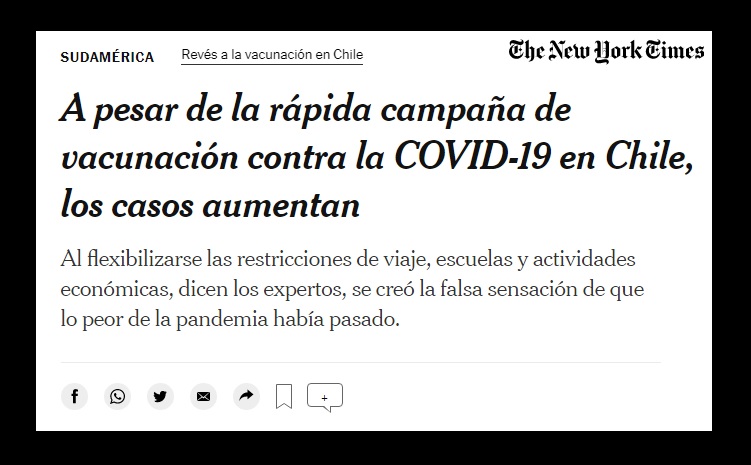 El incomprensible enojo del temperamental ministro de Salú, Enrique Paris -como pronuncia él- con la prensa internacional y que ayer tiló e mentira hoy le caen en el rostro como una amarga verdad, tal como lo señaló The New York Times «dio a los chilenos una falsa sensación de seguridad y contribuyó a un fuerte aumento de nuevas infecciones y muertes que está sobrecargando el sistema de salud”.