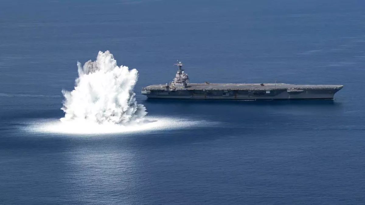 La primera de las pruebas, conocidas como Full Ship Shock Trials, ocurrió el viernes, cuando la Armada desencadenó un evento explosivo gigante cerca del portaaviones, según un comunicado.
