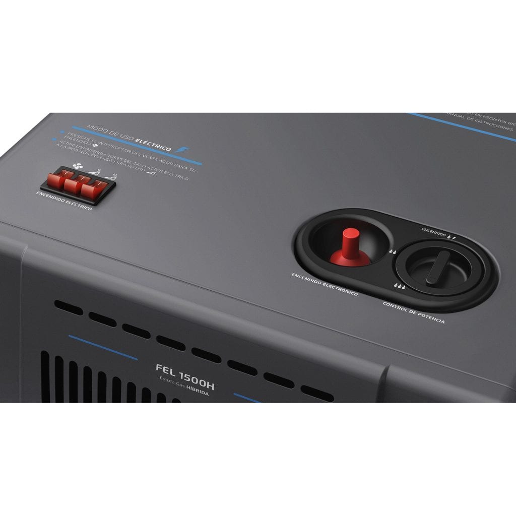 ● La novedad es la nueva estufa FEL1500H, mezcla un sistema eléctrico y a gas que funcionan de manera independiente, calentando los espacios tres veces más rápido que otros modelos. Esta función dual incluye un turbo calefactor eléctrico y se puede usar la potencia eléctrica cuando el tanque está vacío, permitiendo aumentar la cobertura y un mejor consumo del gas.