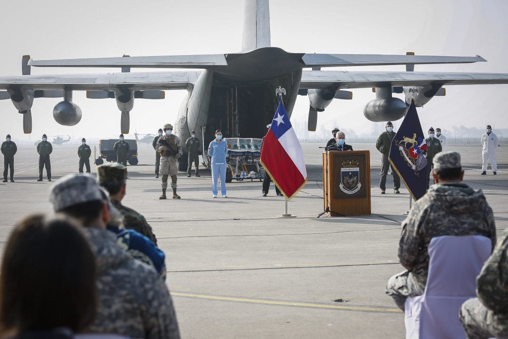 En tanto, el titular de Salud, Enrique Paris, agradeció “a todas y todos los funcionarios, tanto de salud como de las distintas ramas de las Fuerzas Armadas que desde un inicio han ayudado a combatir esta pandemia, especialmente a la Fuerza Aérea de Chile por el trabajo realizado no sólo en el traslado de pacientes, sino que también en el transporte de equipamiento, de ventiladores mecánicos y de vacunas a lo largo de todo el territorio nacional. Mi reconocimiento además a la Armada y al Ejército de Chile que nos ha contribuido enormemente con sus hospitales institucionales que nos han apoyado considerablemente, multiplicando su capacidad de atención en las Unidades de Pacientes Críticos, lo que para nosotros ha sido invaluable”.