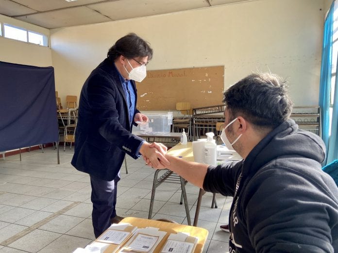 El exalcalde de Recoleta llegó hasta la Escuela Víctor Cuccuini de dicha comuna para emitir su sufragio, acompañado por una numerosa comitiva que incluyó entre otras a las diputadas comunistas Karol Cariola, Marisela Santibáñez y Camila Vallejo, junto a la alcaldesa de Santiago, Irací Hassler.