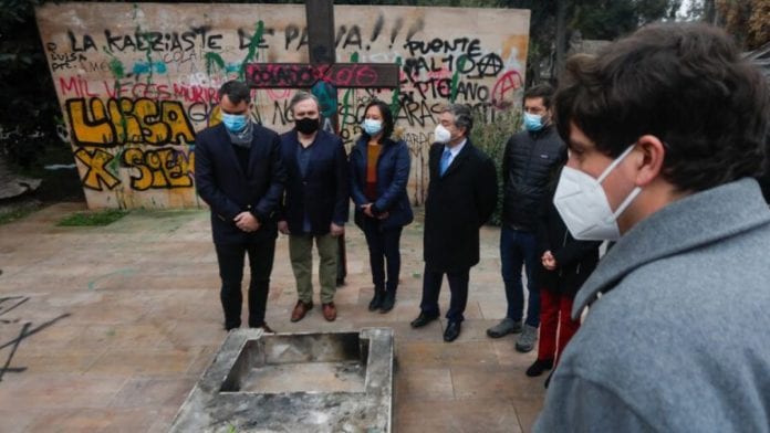 El presidente de la UDI, Javier Macaya, anunció acciones legales en contra de los responsables por los daños causados la semana pasada a la tumba de Jaime Guzmán en el Cementerio General.
