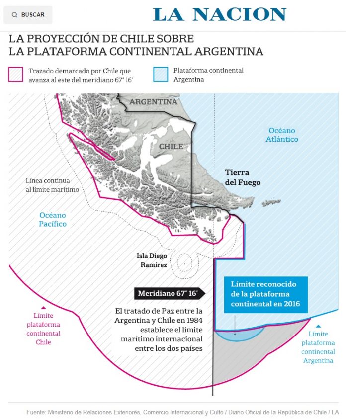 El conflicto se refiere a una medialuna de más de 5000 kilómetros en la que hay una plataforma continental y una superposición de intereses entre lo que declaran ambos países sobre una zona de 5 kilómetros cuadrados aproximadamente, según declaró a medios locales el presidente chileno Sebastián Piñera, ramta la nota de La Nación.