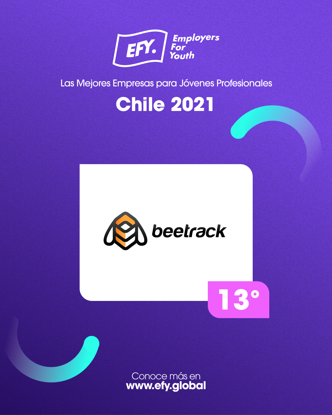 - El reconocimiento de efy.global posicionó a la compañía líder en trazabilidad logística en el puesto 13° del ranking. “Esto demuestra su motivación e interés por mejorar la experiencia de los jóvenes en las organizaciones”, señalaron en EFY.