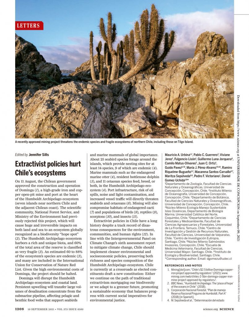 «Todas estas revistas como Nature o Science tienen un espacio que le permite a la comunidad hacer notar temas que son de interés global, como un llamado de atención. Dan este espacio para temas que son un poco ignorados, logren tener cierto respaldo y sucedan cambios, y estas secciones salen todas las semanas con temas provenientes de diversos lugares del mundo. El objetivo es tomar foro y levantar opinión sobre algo que no debería estar ocurriendo», explica el Dr. Mauricio Urbina de la Universidad de Concepción.