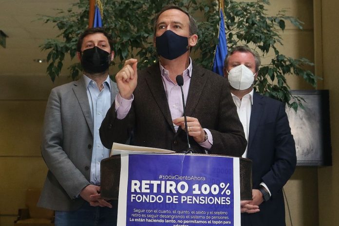Asimismo, Alessandri sostuvo que “hemos decidido presentar nuevamente nuestro proyecto del retiro del 100% que permite mover la plata a un bolsillo más seguro, mover la plata a una cuenta blindada. Nosotros estamos reingresando ese mismo proyecto, mejorado, a través de la Secretaría de la Cámara de Diputados para que subsista esa posibilidad, una especie de ‘en caso de emergencia rompa el vidrio’. Que si a un futuro Presidente populista o un futuro Parlamento populista se le ocurre echar mano a los fondos de los trabajadores, las chilenas y los chilenos tengamos 120 días para mover esos dineros a otros instrumentos financieros, a salvo del populismo, a salvo del ‘topón para adentro’, a salvo de la guerras de algún líder o Parlamento que opte por ese camino populista”.