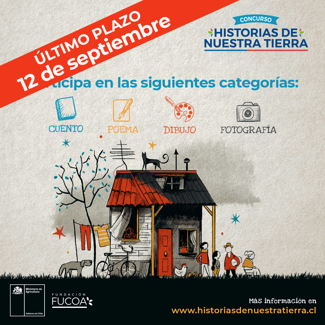 Hasta el domingo 12 de septiembre se extendió el plazo para participar en el Concurso Historias de Nuestra Tierra 2021 de la Fundación de Comunicaciones, Capacitación y Cultura del Agro (FUCOA) del Ministerio de Agricultura, que tiene como finalidad relevar y poner en valor la cultura rural y campesina de Chile.