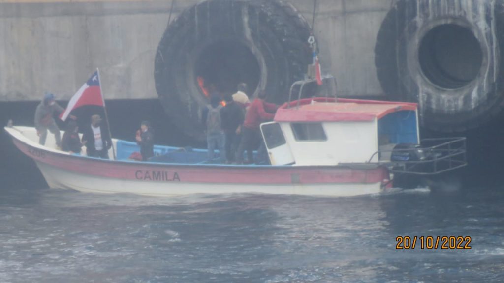 Ante ello, relató que al sitio «se dirigieron dos lanchas rápidas de la Armada a evitar dicha situación al llegar -y lo que me dice la Autoridad Marítima que está todo grabado y filmado, así es que los medios de prueba van a estar a la vista cuando ejerzamos las acciones legales-, al acercar para impedir que corten las amarras de un buque de carga de fierro, los agredieron lanzándoles piedras, objetos y atacando una de las lanchas«.