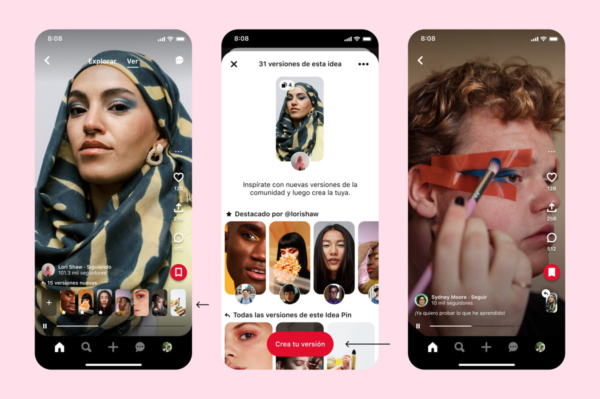 A diferencia de otras apps enfocadas en el entretenimiento y el desplazamiento pasivo, las “Versiones” están diseñadas para inspirar a los usuarios a probar algo nuevo y les permiten a los creadores generar un sentido de comunidad en torno a las pasiones compartidas. Las respuestas de los usuarios se vincularán con los Idea Pins originales de los creadores, y estos también pueden resaltar versiones destacadas de los usuarios.