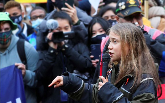 «Los verdaderos líderes no están ahí, somos los verdaderos líderes». Así Greta Thunberg, que quedó fuera de la sala de trabajo de la CoP26, que se puso en marcha hoy en Glasgow y en su lugar regresó a la plaza bajo el cielo lluvioso de la ciudad escocesa para abordar la protesta contra la inercia atribuida a los poderosos de la tierra en el emergencia del cambio climático, animada sobre todo por los jóvenes de su generación. La activista sueca desde el escenario acusó a los jefes de Estado y de gobierno de «fingir» los compromisos que dicen poner sobre la mesa. Insinuando que no hay que confiar y agregando que, sin la presión de abajo, no hay mucho que esperar.     Luego, una vez más, desestimó los discursos de los líderes mundiales sobre el clima como «bla, bla, bla»: un «bla, bla, bla» que varios manifestantes repitieron a coro.