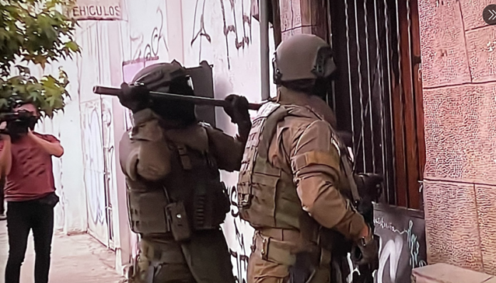 Durante la tarde de este viernes personal del Gope de Carabineros allanó la sede del partido Comunes, en medio de la investigación que lleva el fiscal Héctor Barros, por los abultados sueldos a siete asesores de Karina Oliva cuando era candidata a la Gobernación Metropolitana. Sin embargo, lo llamativo del procedimiento fue la forma, al más estilo de películas de Hollywood, como lo hicieron, ya que con armamento de guerra en mano y pateando la puerta de ingreso lograron avanzar en el lugar que acoge a este cuestionado partido político.
