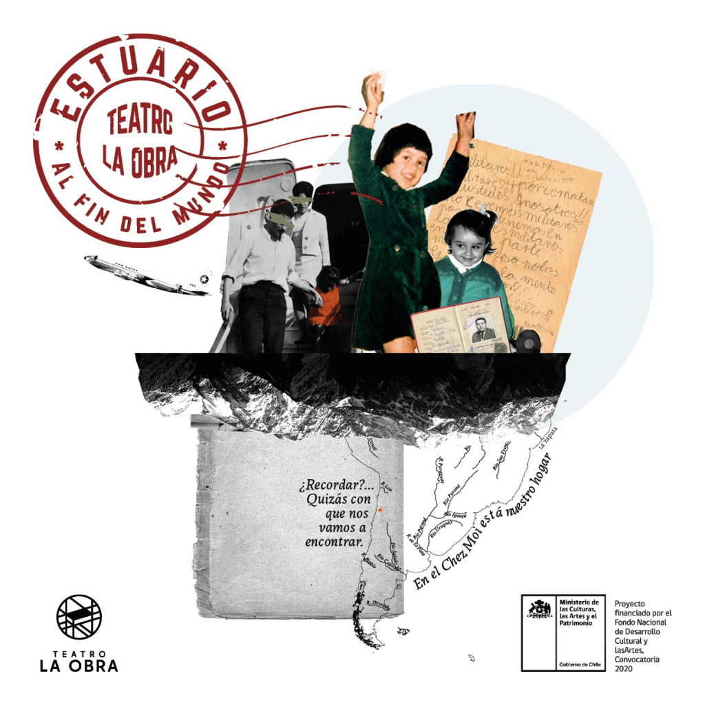 “Estuario al fin del Mundo”, fue escrita y dirigida por la dramaturga Gisselle Sparza y es el primer montaje para un público familiar (+7 años) de Teatro La Obra. El proceso creativo se gestó en residencia, en la región de Bretaña, Francia (2019); lugar donde Gisselle y la directora musical de la compañía, Javiera Hinrichs, iniciaron una investigación basada en la recopilación de testimonios de hijos/as de exiliados/as que crecieron fuera de Chile. El gesto de archivo, memoria y los derechos humanos han sido claves dentro de la trayectoria de esta compañía, cuya producción tiene hitos relevantes a nivel regional y nacional por obras como “Prometeo Nacional” y “Con-cierto deseo. Concierto teatral para voces femeninas”. En este quinto montaje, la dramaturgia se abre a un público más amplio, en un proceso que ha integrado a todo el equipo artístico y técnico de la compañía y que ha planteado nuevos paradigmas de creación escénica.