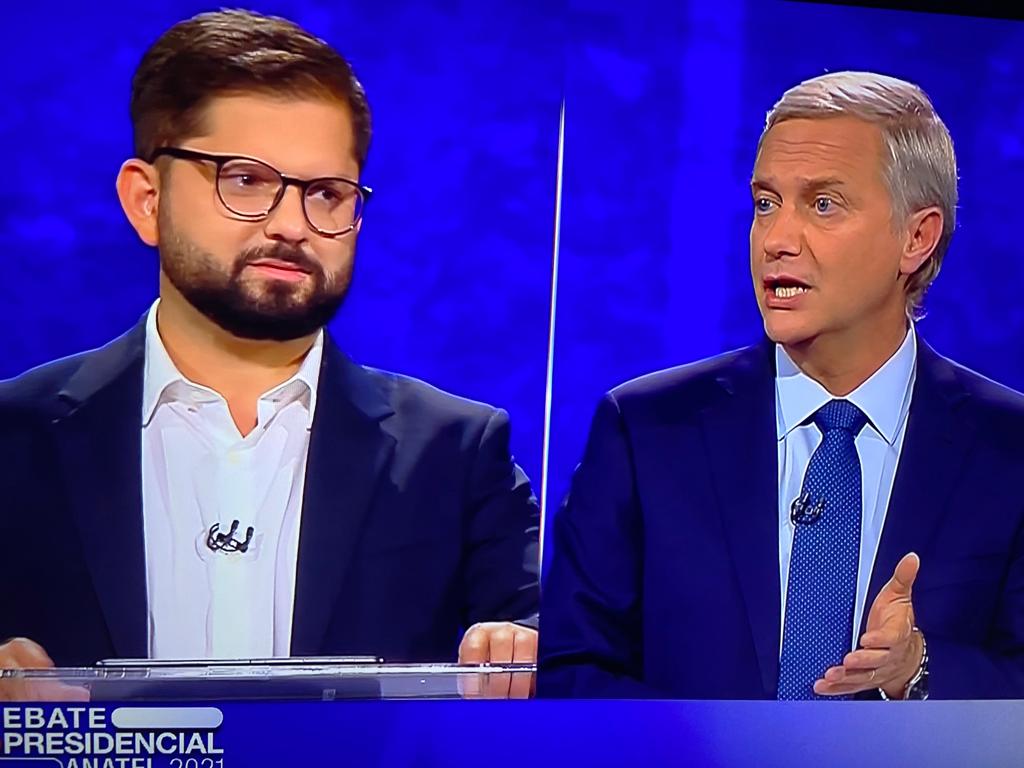 El candidato presidencial de Apruebo Dignidad, Gabriel Boric, encaró en el debate Anatel a José Antonio Kast, apuntándolo tras ser cuestionado por su postura respecto a las AFP en la parte en el que se abordó el tema de las pensiones.