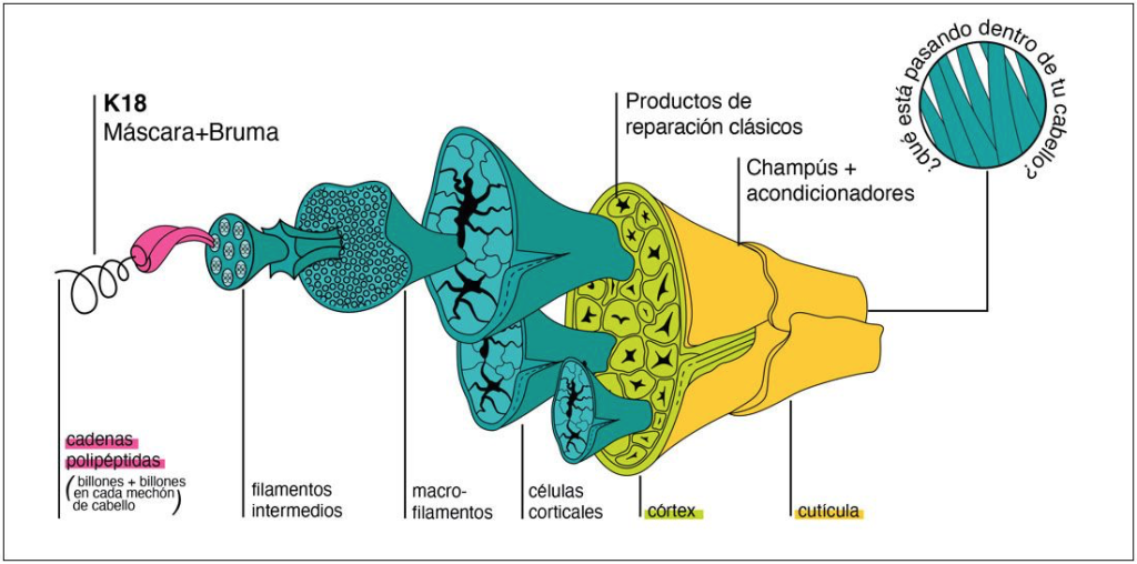 Por eso, sus creadores pasaron una década en un laboratorio de biociencias, estudiando las secuencias de aminoácidos que componen el genoma de la queratina, logrando desarrollar un avance molecular patentado: el K18Peptide™.