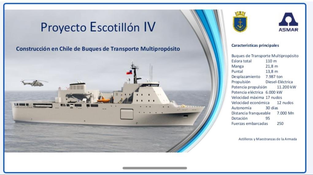 El proyecto Escotillón IV, busca reemplazar a las actuales unidades que componen el Comando Anfibio y de Transportes Navales, las cuales fueron construidos en la década de los 80 y principios de los 90, alcanzando en su mayoría entre 30 y 40 años de servicio enarbolando el pabellón nacional. Estos buques son el transporte «Aquiles», el buque multipropósito “Sargento Aldea” y las barcazas “Rancagua” y “Chacabuco”.