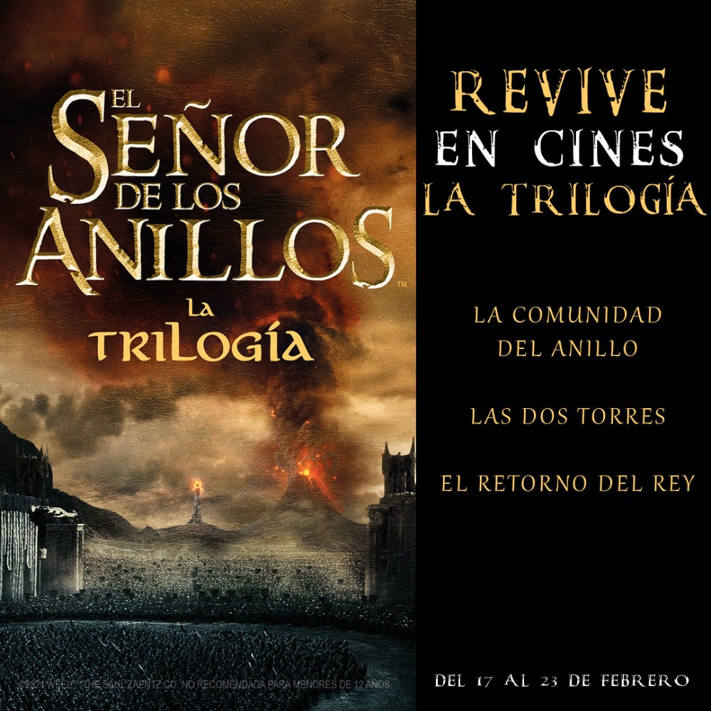“La Comunidad del Anillo”, “Las Dos Torres” y “El Retorno del Rey” se reestrenarán del 17 al 23 de febrero en Hoyts/Cinépolis, Cinemark, Cineplanet y Muvix, en horarios que cada cadena informará oportunamente a través de su página web y cines.