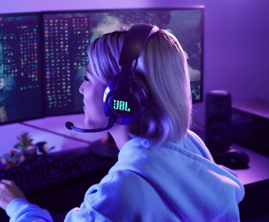 Para las amantes de los videojuegos están los JBL Quantum 600. Están diseñados para disfrutar de una experiencia inmersiva y de alto rendimiento. El sonido JBL QuantumSURROUND™ replica un entorno espacial amplio y realista. El micrófono vocal de asta ofrece una comunicación clara, mientras que un dial de ajuste con certificación DISCORD le permite equilibrar el nivel de juego-sonido. Acabadas en cuero, las almohadillas de espuma viscoelástica le dan un máximo confort. Además, ofrece hasta 14 horas de uso.