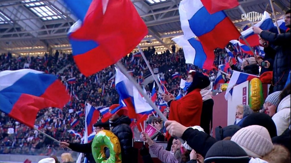 El evento marcó oficialmente el octavo aniversario de la anexión de Crimea por parte de Rusia, pero muchos de las frases del discurso tenían como objetivo reunir al país detrás de la invasión de Ucrania. La policía de Moscú dijo que más de 200.000 personas estaban dentro y alrededor del Estadio Luzhniki, que fue sede de la final de la Copa Mundial de la FIFA 2018, y muchos ondeaban banderas con el símbolo «Z».