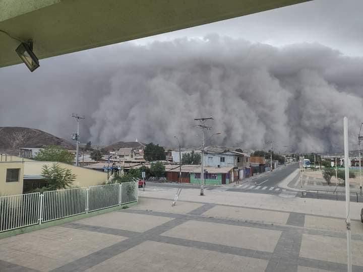La tarde de este jueves se registró una enorme tormenta de arena en la ciudad de Diego de Almagro, la cual fue seguida instantes más tarde por una fuerte tormenta de granizos en el pueblo de Inca de Oro, ubicado en la misma comuna.