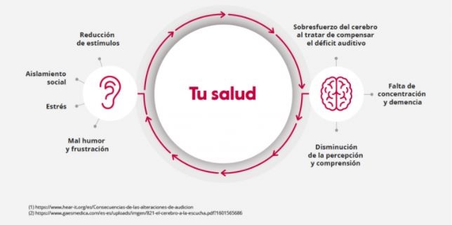El esfuerzo del cerebro para compensar el deterioro auditivo que provoca fatiga mental, problemas cognitivos derivados del aislamiento social y alteraciones emocionales como la depresión, son solo algunas de las consecuencias provocadas por la pérdida de la audición.