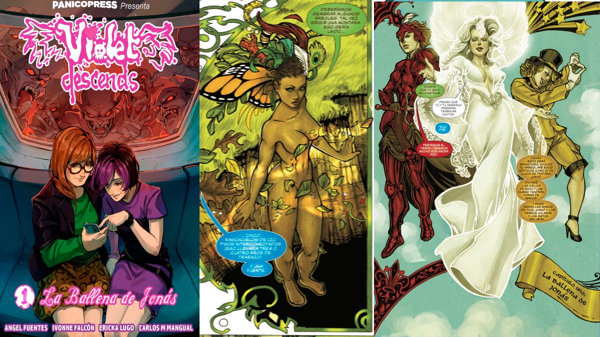 ¿A quién culpar por el fin del mundo? ‘Violet Descends’, el nuevo cómic del colectivo latinoamericano Pánico Press, parece tener la respuesta. O al menos eso es lo que indica la trama del libro: cuando la arcángel Uriel, también conocida como Violet, abandona sus sagrados ministerios como guía de las emociones de la humanidad, el mundo es lanzado de repente a un evento apocalíptico infernal. Acompañada de su amiga humana Ruth, Violet debe encontrar la manera de arreglar el desastre que causó, mientras descubre una conspiración secreta que se remonta a los comienzos de la creación de la Tierra.