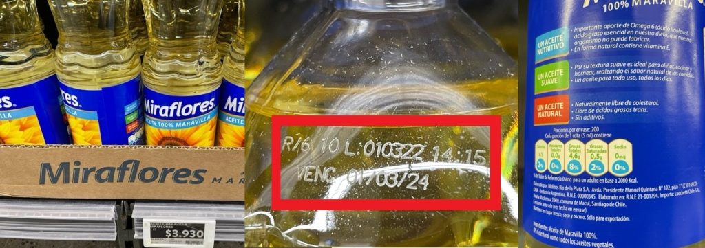 Ahora bien, lo curioso es que la causa de esta alza brutal es que Ucrania es uno de los principales productores de maravilla el mundo y por la guerra se elevan los precios, pero resulta que el aceite Vegetal y de Maravilla que se vende en Chile es de ARGENTINA, por lo tanto estamos frente a una especulación o derechamente aprovechamiento, más cuando al revisar la fecha de elaboración de los aceites en cuestión dice que son del 13 de febrero de 2022, es decir cuando NO había guerra y que evidencia que los grandes distribuidores y supermercados cuentan con mucho stock de este producto comprado seguramente a precio normal sin incidencia de la guerra.