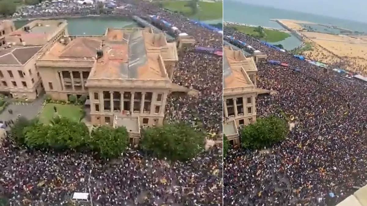 Miles de manifestantes se congregaron este sábado en la capital comercial de Sri Lanka, Colombo, en algunos casos provenientes de distintos puntos del país, y avanzaron rumbo a la residencia del presidente Gotabaya Rajapaksa, donde rompieron las barreras de seguridad policiales y asaltaron el recinto, según reportes de medios de prensa, al cual posteriormente le prendieron fuego.