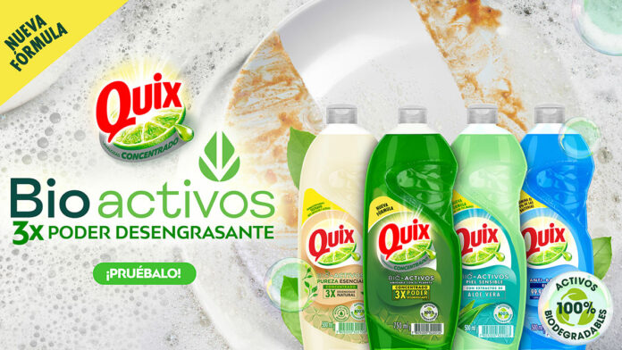 El trabajo de lavar la loza sucia no suele estar en los panoramas más divertidos del día a día y la tarea se vuelve más compleja si se debe quitar la grasa de recipientes e instrumentos de cocina, ya que muchos productos de higiene para el hogar contienen químicos nocivos para la piel. En búsqueda de una solución al alcance de todos los bolsillos y con calidad garantizada, Unilever creó la nueva fórmula de QUIX Bio-Activos con activos 100% biodegradables que mantienen el triple poder desengrasante del producto y apuntan a resultados superiores gracias a sus componentes que ayudan a la disolución de la grasa, al cuidado de las manos y a la vez son amigables con el planeta.