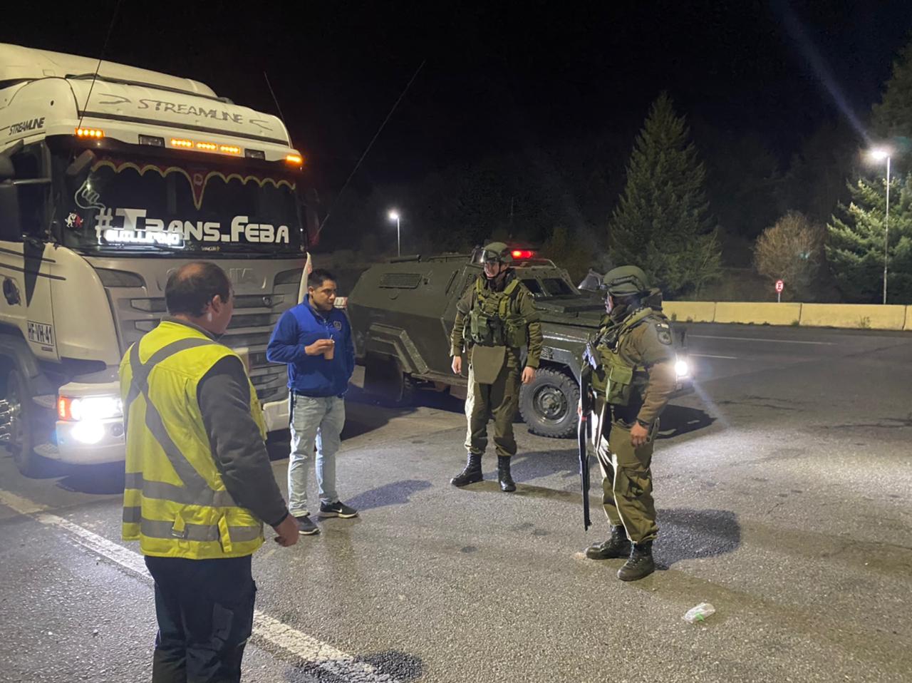 En tanto, camioneros también decidieron suspender sus recorridos por la ruta 5 Sur, estacionándose en el sector de Duqueco ante las barricadas en los caminos que comenzaron a instalar encapuchados.