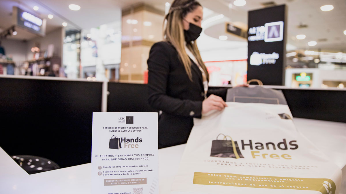 “Hands Free” es la nueva iniciativa de mall Alto Las Condes que ofrecerá un servicio de custodia, entrega y retiro de compras que debuta en el centro comercial y que tiene como objetivo mejorar la experiencia de los clientes durante su visita.
