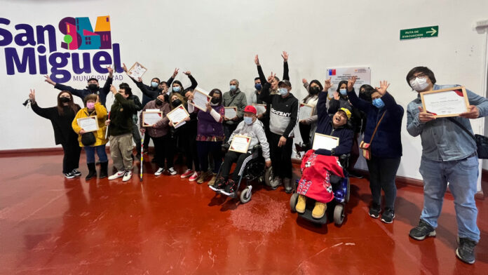 Esta semana se llevó a cabo la ceremonia de graduación de la primera etapa del curso de Formación e Inclusión Sociolaboral de Personas con Discapacidad (PcD), donde los y las participantes de la Región Metropolitana y de Valparaíso, pudieron compartir en dependencias de la Municipalidad de San Miguel con la alcaldesa de la comuna, Érika Martínez Osorio y recibieron el testimonio de superación y resilencia de Mauricio Riffo “Teniente Dan”, PcD que actualmente es asesor en temas de inclusión laboral en el Ministerio de Trabajo y Previsión Social.