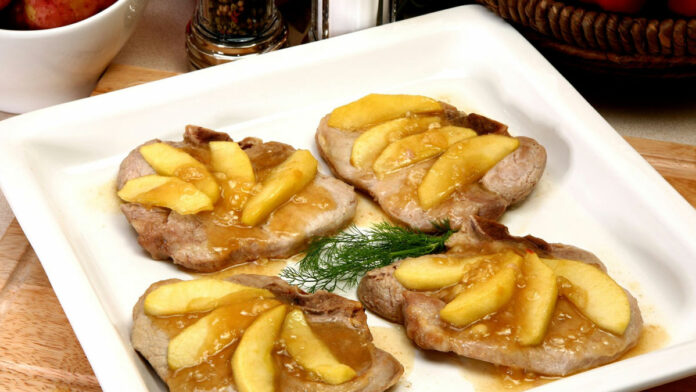 - Agregar el ajo picado, junto al orégano, sal y pimienta sobre las manzanas, y colocar el costillar de cerdo.