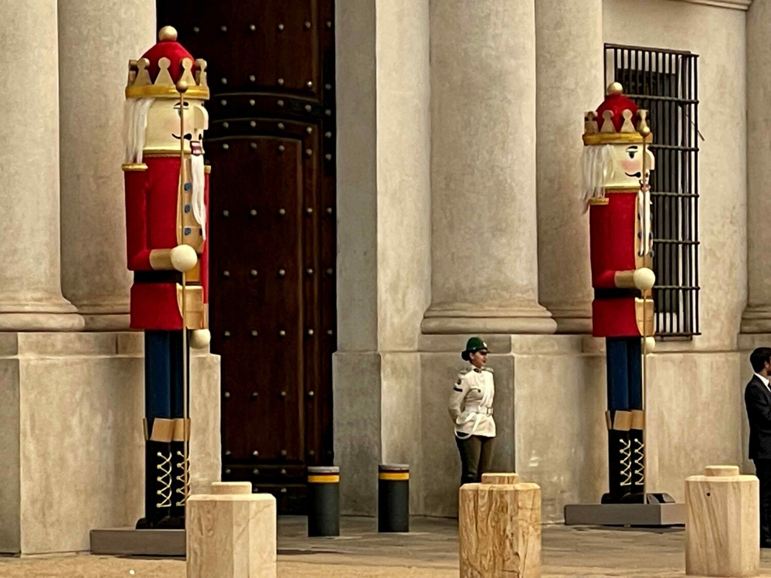 Por estos días previos a la Navidad, el Palacio de La Moneda luce en sus ingresos principales una pareja de cascanueces gigantes que custodian el ingreso a la «casa donde tanto se sufre», y que es un bonito cambio en la ornamentación que hace la casa de gobierno que por décadas ha sido de lo más fome y poco festivo, pero como la idea es fastidiar, hay muchas críticas ponzoñosas a esta iniciativa, como la que hizo el excandidato presidencial de la derecha que está más a la derecha de la derecha tradicional, José A. Kast que posteó -en modo Grinch- «Desconexión total», pero la respuesta no vino de Palacio, sino que del embajador de Canadá en Chile, Michael Gort, quien le espetó: «o tal vez un lindo homenaje a la música de Tchaikovsky, a la época navideña y a los niños y niñas 🚸que visitan el Palacio Presidencial estos días?«