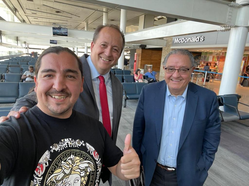 Se trata de una fotografía en el Aeropuerto Arturo Merino Benítez de Santiago, donde Fernández “celebra” la elección de Valencia como fiscal nacional junto al senador por la Araucanía, Francisco Huenchumilla, con quienes viajó posteriormente al Sur de Chile.