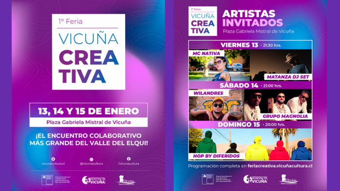 Un panorama imperdible para todos los públicos. Más información en: feriacreativa.vicunacultura.cl , Instagram/Facebook como @vicunacultura o en la web www.culturavicuna.cl