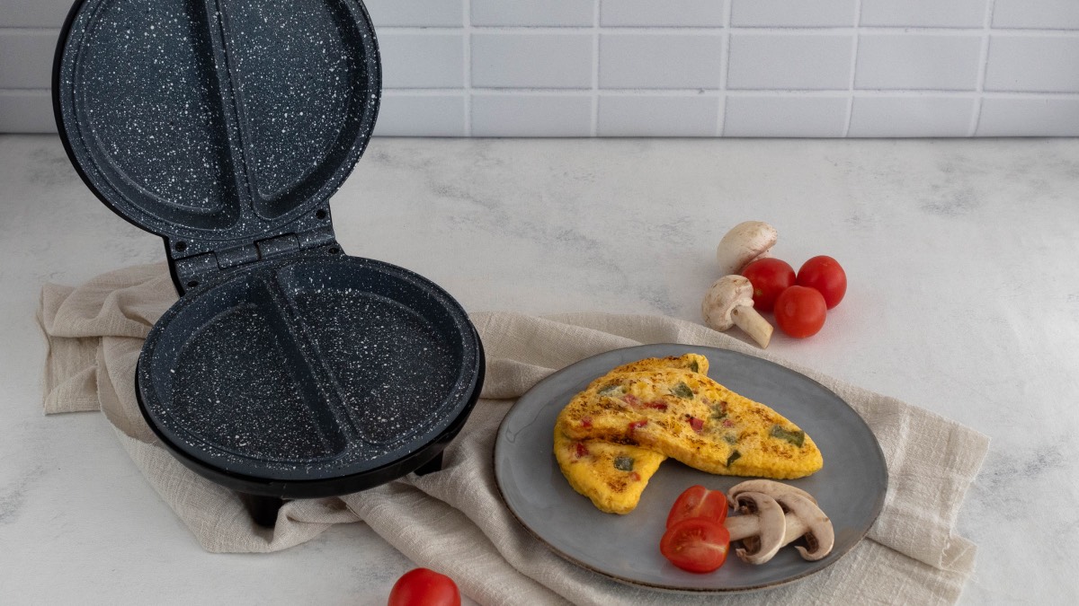 Por supuesto un desayuno no está completo sin la proteína, y es que se necesita energía para comenzar el día, sobre todo cuando se está retomando la rutina, y para eso, Blanik ofrece su fantástica Omelette Maker, con capacidad para preparar dos omelette por vez, la máquina es de un diseño compacto, de fácil manipulación y limpieza, que en pocos minutos te entrega unos sabrosos y esponjosos omelettes que puedes rellenar con los ingredientes que más te gusten, como champiñones con queso mozarella y espinaca baby, por ejemplo.
