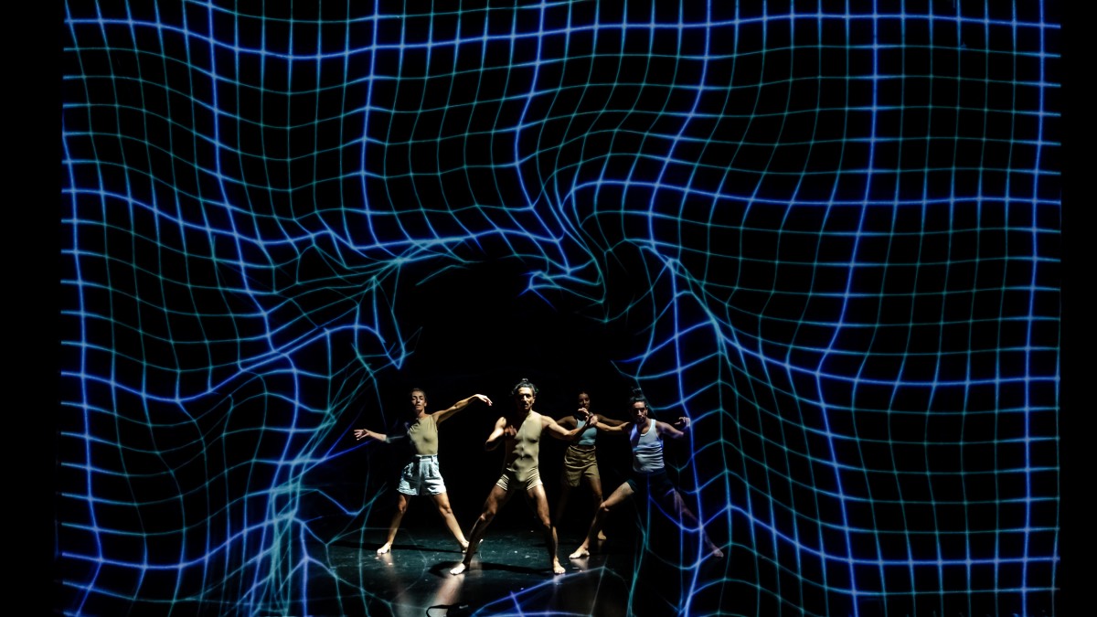 Este montaje especial consiste en una proyección frontal sobre una pantalla holográfica, donde los entornos visuales y objetos 3D se mapean en la superficie proyectiva, aumentando la realidad con una perspectiva de profundidad. La pantalla es semitransparente permitiendo una visualización de los contenidos digitales integrados con los cuerpos en escena. La obra contará con un sistema tecnológico que incluye sensores de movimiento, que permite obtener datos en tiempo real para un gran resultado de interacción e inmersión. El diseño que se presentará en esta pantalla son composiciones digitales donde los avatars de los performers serán representados por sistemas de partículas, en entornos inmersivos, con iluminación audio reactiva, movimientos 3D de cámara, efectos visuales y sonoros.