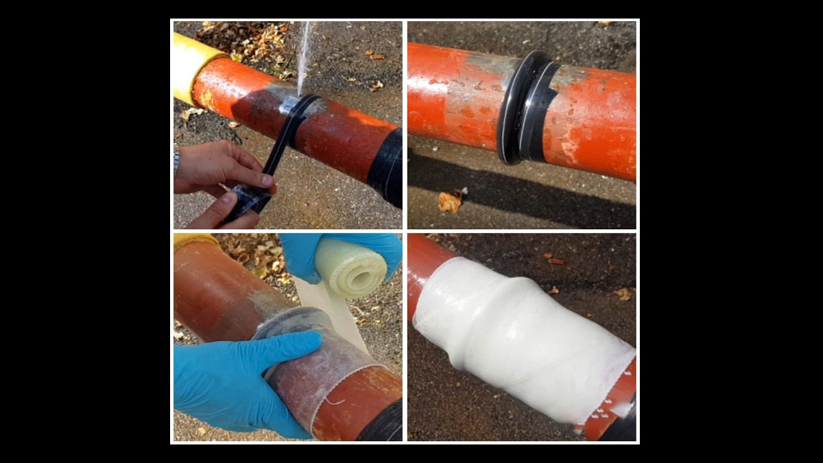 Y es que en tan sólo 30 minutos permite sellar una tubería de manera definitiva, realizando una envoltura con un vendaje de formulación especial impregnada con un sustrato de fibra de vidrio que se activa con el agua, unido a una huincha auto-fusionable para gestionar la fuga viva, incluso si no se puede cortar la presión, y una masilla epoxy de secado super rápido. Además, es fácil de aplicar porque no es necesario hacer mezclas para medir, entregando una eficiencia comprobada en situaciones de emergencia y prevención.