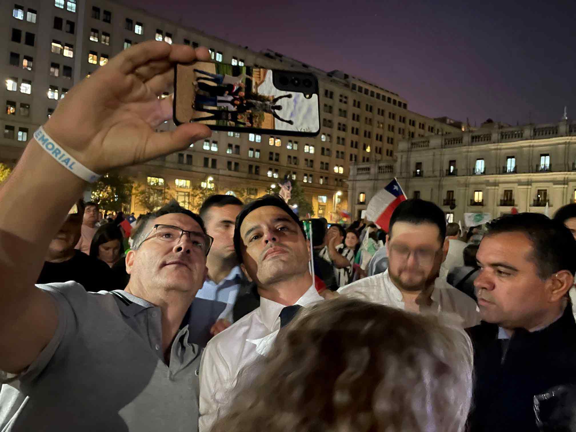 Esta tarde noche unas 400 personas llegaron a manifestarse frente a La Moneda en apoyo a Carabineros, con pancartas, fotos de Pinochet y banderas con el escudo de Carabineros, gritando y cantando contra el Presidente Boric y la ministra Carolina Tohá, y en un momento llega el alcalde de La Florida, Rodolfo Carter que se sacó selfies con todos y dio una cuña a la prensa y luego partió, lo que se puede interpretar como un aprovechamiento de la lamentable situación de inseguridad que vive el país, para avanzar en su pretensión como candidato prepresidencial