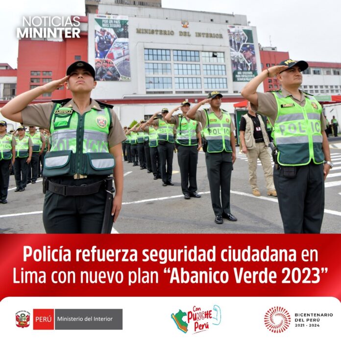 El anuncio lo hizo el comandante general de la Policía Nacional del Perú, Jorge Angulo,junto al ministro del Interior, Vicente Romero y que se enmarca en el «Plan Abanico Verde 2023».